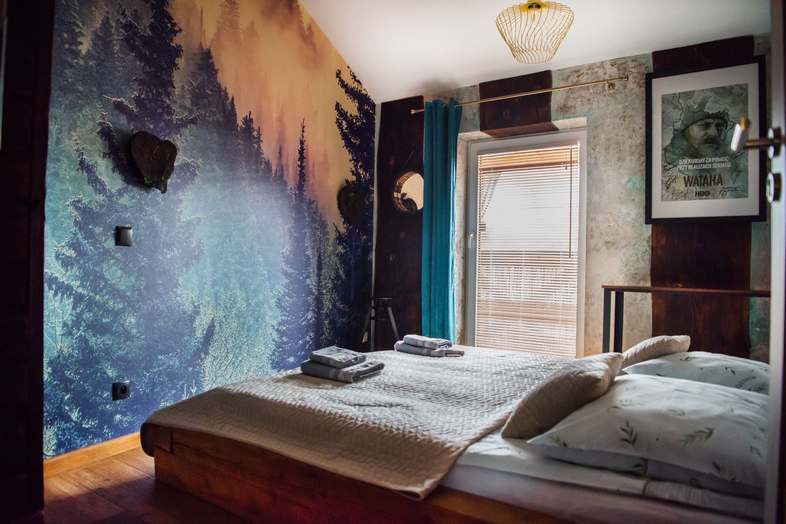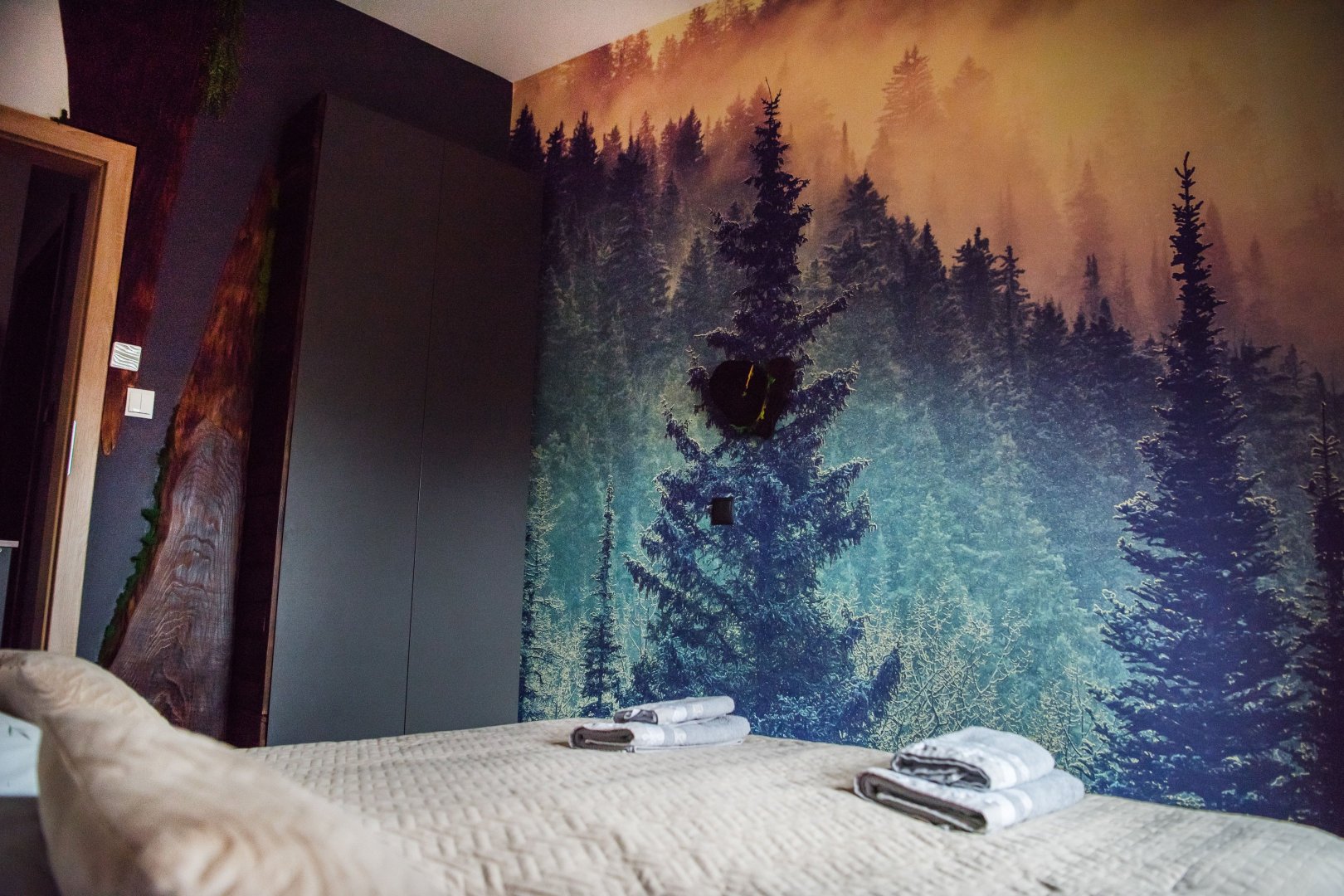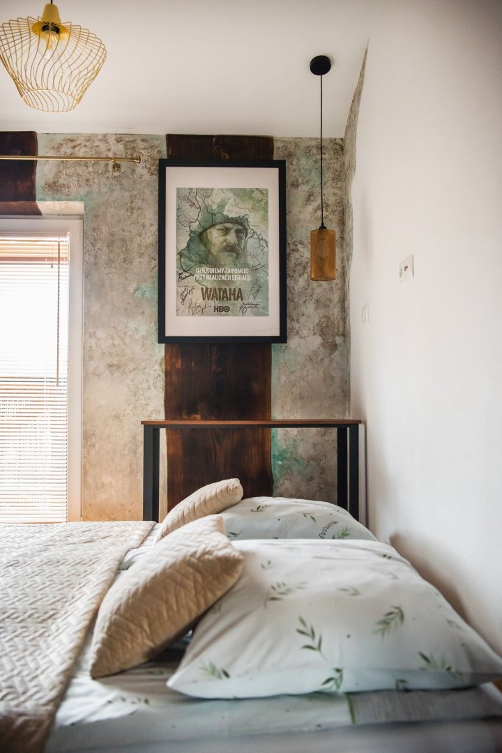 dwie osobne sypialnie – każda w unikalnym stylu, inspirowana bieszczadzką naturą