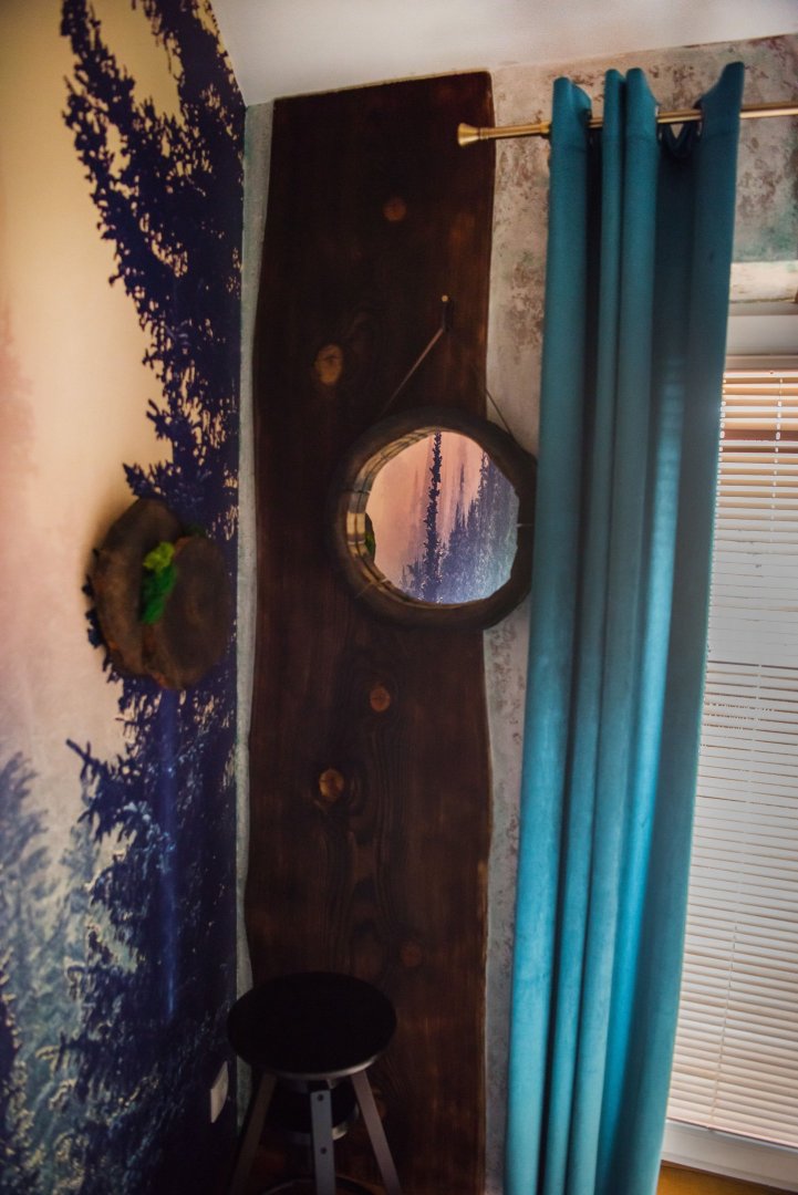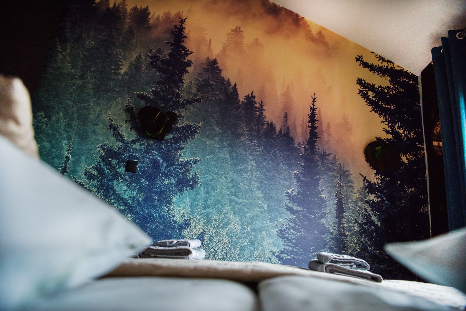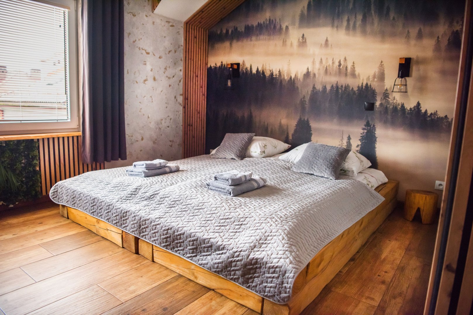 dwie osobne sypialnie – każda w unikalnym stylu, inspirowana bieszczadzką naturą