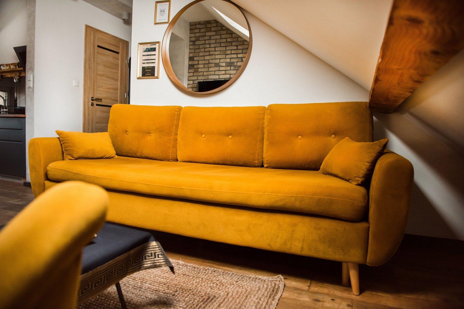 Rozkładana sofa w salonie – miejsce do spania dla 2 osób