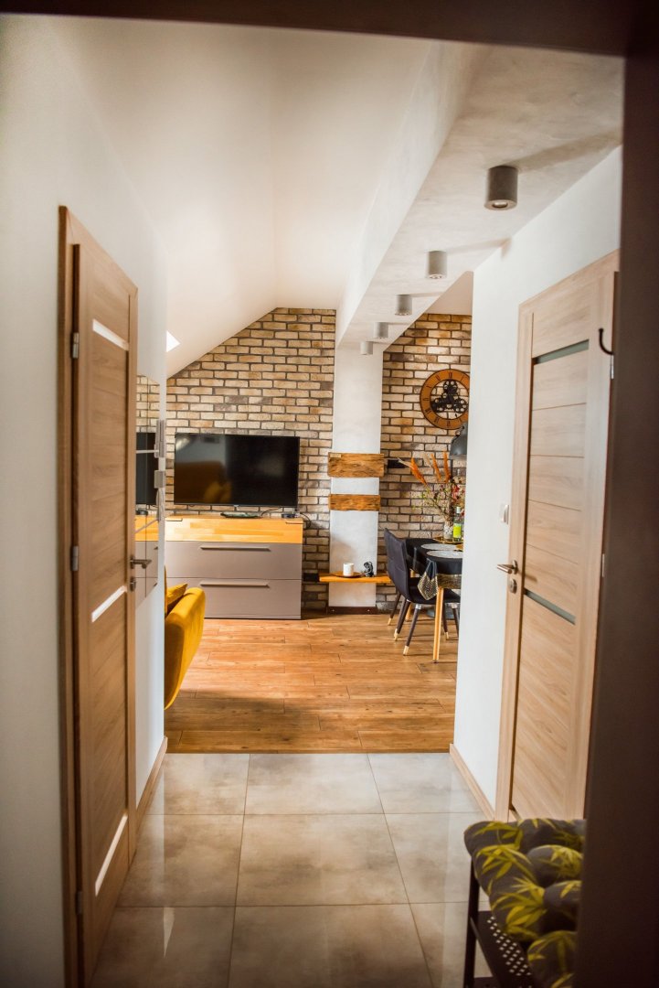 Drewniane detale i ceglane ściany – przytulny, oryginalny klimat